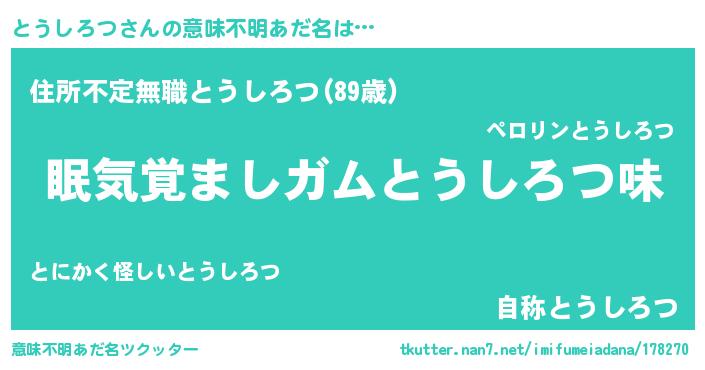 | ポケモン風あだ名 | 『トックウザ』『トーウイ』 |