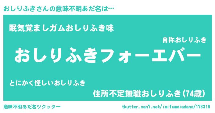 | 男性向けラノベタイトル風あだ名 | 『やはりおしりふきの青春ラブコメはまちがっている 』 |