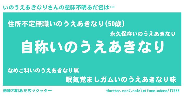| ヘコむあだ名 | 『いのうえあきなり(震え声)』『いのっ子』 |