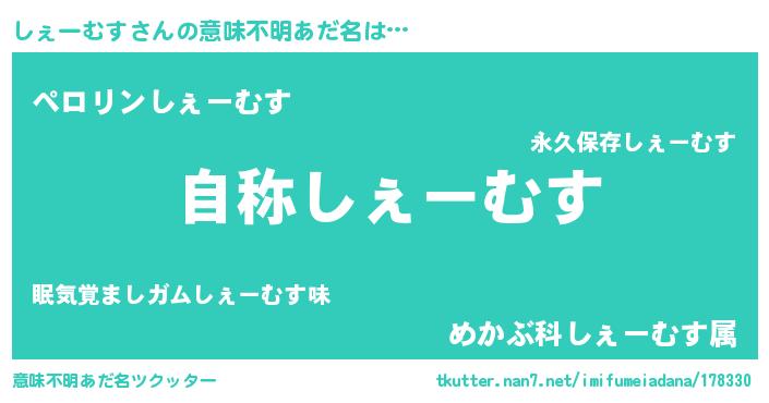 | ヘコむあだ名 | 『しぇもー』『しぇーむす(苦笑)』 |