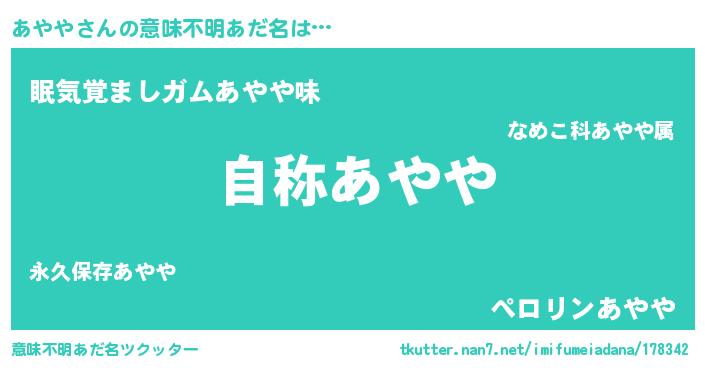 | 男性向けラノベタイトル風あだ名 | 『Re:あややから始める異世界生活』 |
