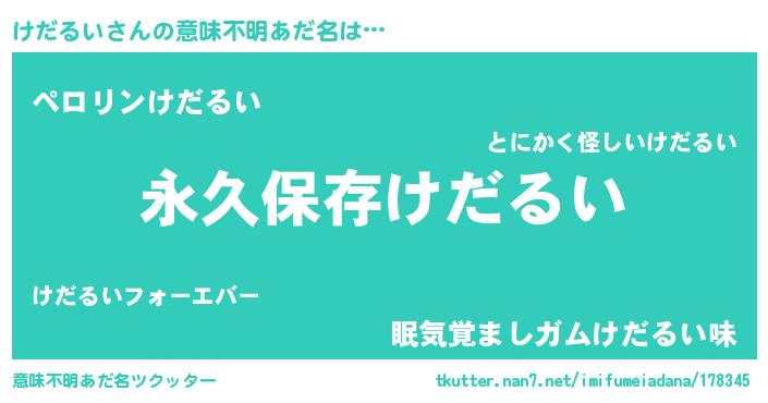 | ヘコむあだ名 | 『けだるい(遠い目)』『けだっふぃ~』 |