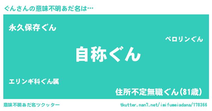 | 男性向けラノベタイトル風あだ名 | 『Re:ぐんから始める異世界生活』 |