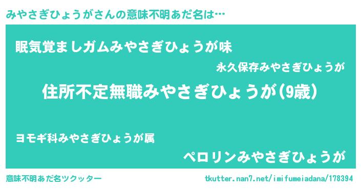 | ヒーロー風カッコイイあだ名 | 『仮面ミヤダー』『ネオミヤサギヒョウガ』 |