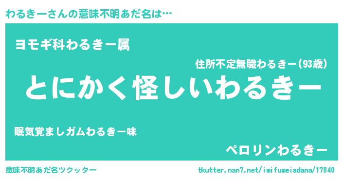| 女子向けラノベタイトル風あだ名 | 『わるきーの卵を拾いまして』 |