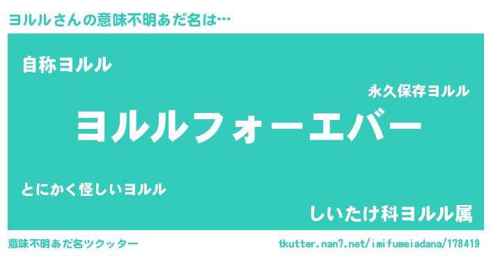 | 欧米人風あだ名 | 『ヨルルクリステル』『トリンドルヨルル』 |