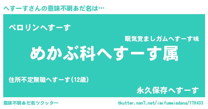 | 胡散臭い通販商品みたいなあだ名 | 『必ず成功する霊験あらたかなお札…その名も「へすーす」』 |
