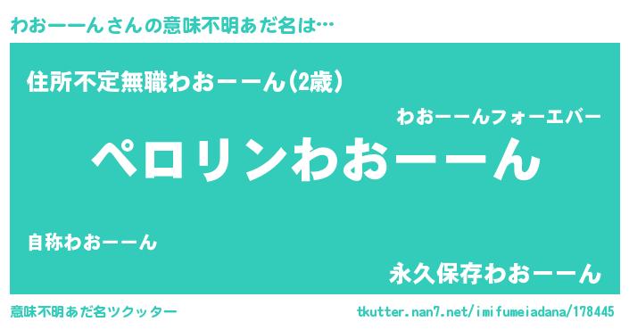 | 男性向けラノベタイトル風あだ名 | 『わおーーんの憂鬱』 |