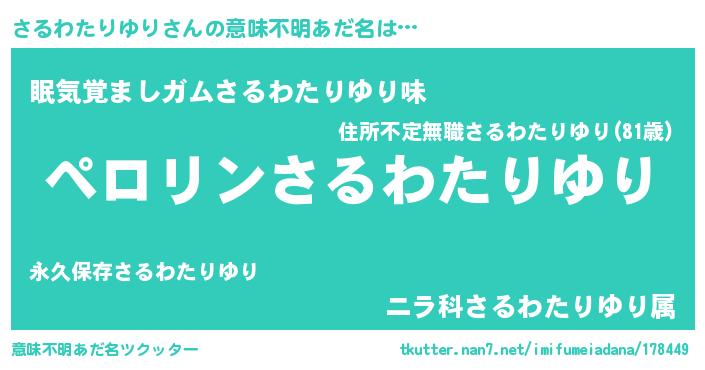 | ヘコむあだ名 | 『さるっふぃ~』『さるわたりゆり(笑)』 |