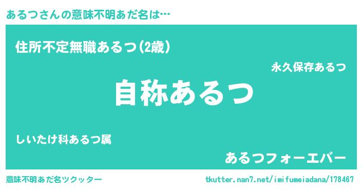 | 男性向けラノベタイトル風あだ名 | 『うちのあるつが世界を掌握している!』 |