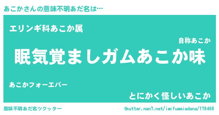 | ヘコむあだ名 | 『あこを』『つくし』『あこにゅー』 |