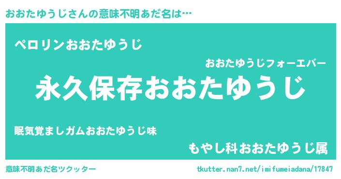 | 男性向けラノベタイトル風あだ名 | 『うちのおおたゆうじが世界を掌握している!』 |