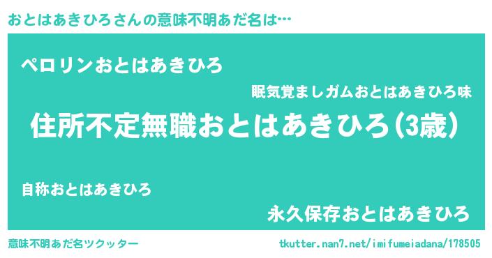 | 男性向けラノベタイトル風あだ名 | 『魔弾の王とおとはあきひろ』 |