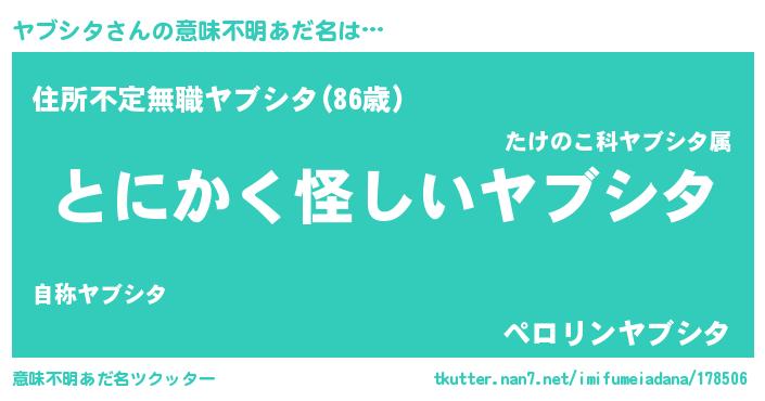 | ピコ太郎風あだ名 | 『ヤブ史郎』『ヤコ八郎』『ヤヤ太郎』 |