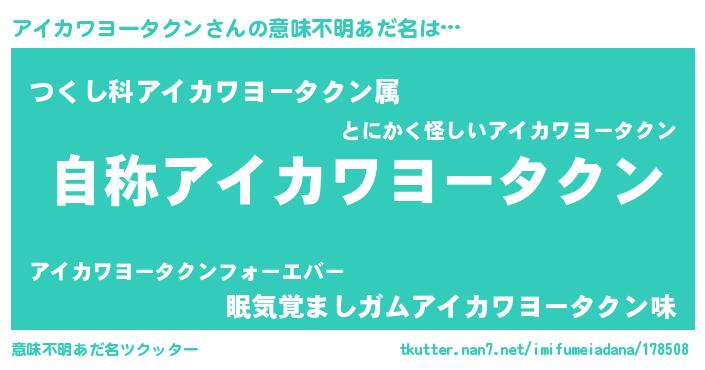 | 肩書あだ名 | 『アイカワヨータクン総統』 |