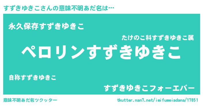 | 男性向けラノベタイトル風あだ名 | 『スズキユキコアートオンライン』 |