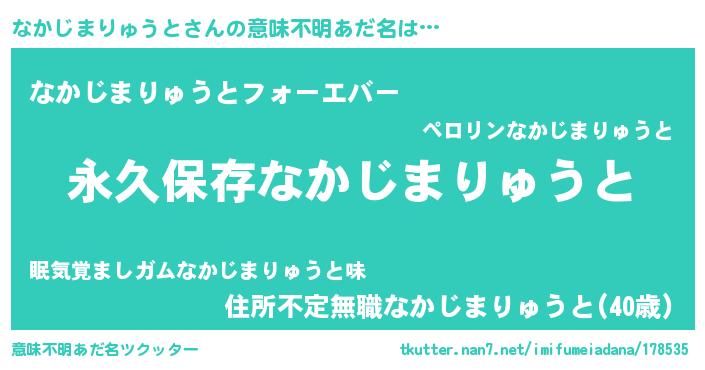 | ヘコむあだ名 | 『なかじまりゅうと(遠い目)』『酢こんぶ』 |