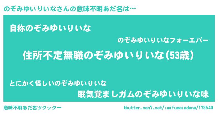 | 欧米人風あだ名 | 『ダレノガレのぞみゆいりいな』 |