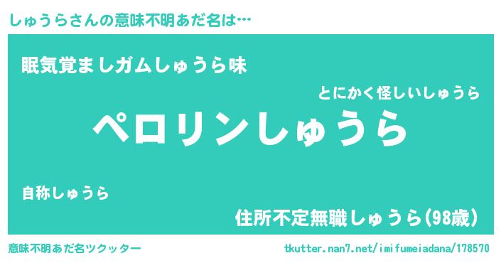 | ヒーロー風カッコイイあだ名 | 『スーパーシュウラ』『愛の使者しゅうら』 |