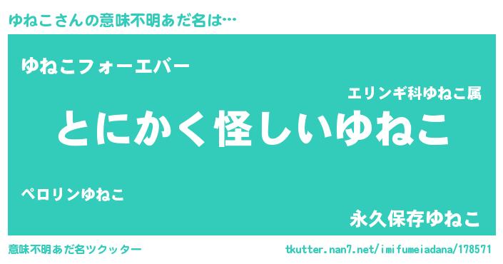 | 女子向けラノベタイトル風あだ名 | 『ゆねこ様がみてる』 |