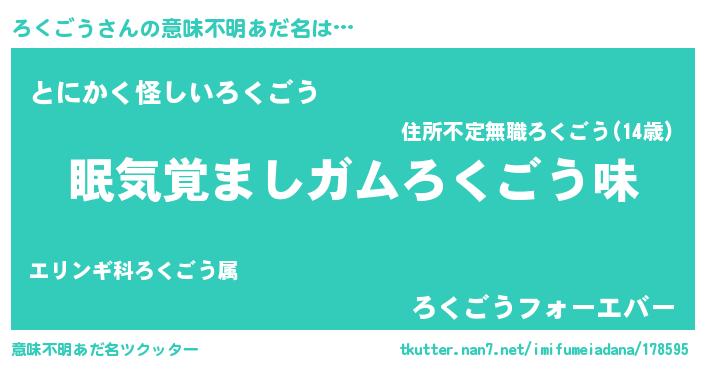 | 男性向けラノベタイトル風あだ名 | 『ノーゲーム・ノーロクゴウ』 |