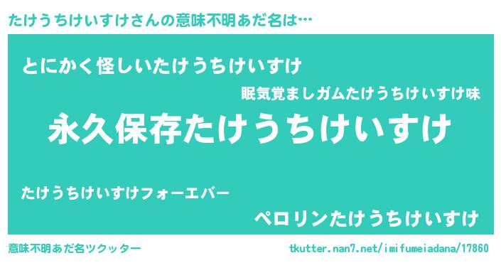 | ヘコむあだ名 | 『たけうちけいすけ(爆)』『たけお』 |