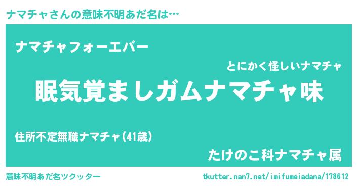 | ヒーロー風カッコイイあだ名 | 『天空の使者ナマチャ』『魔戒騎士ナマ』 |
