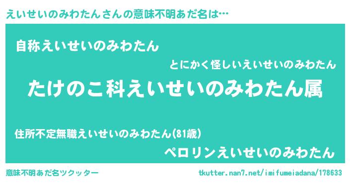 | 欧米人風あだ名 | 『トリンドルえいせいのみわたん』 |