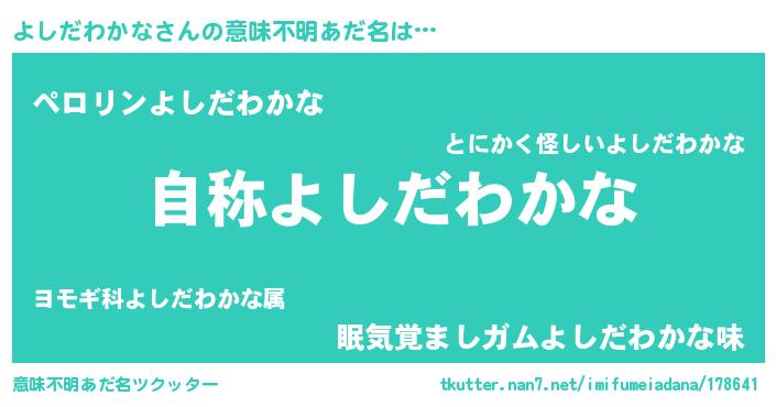 | 肩書あだ名 | 『よしだわかな閣下』『よしだわかな社長』 |