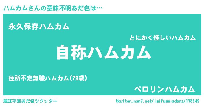 | ヒーロー風カッコイイあだ名 | 『超時空戦士ハムカム』『ネオハムカム』 |