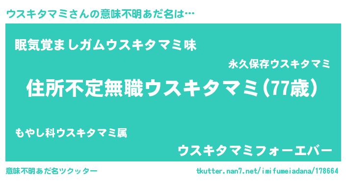 | 男性向けラノベタイトル風あだ名 | 『魔弾の王とウスキタマミ』 |