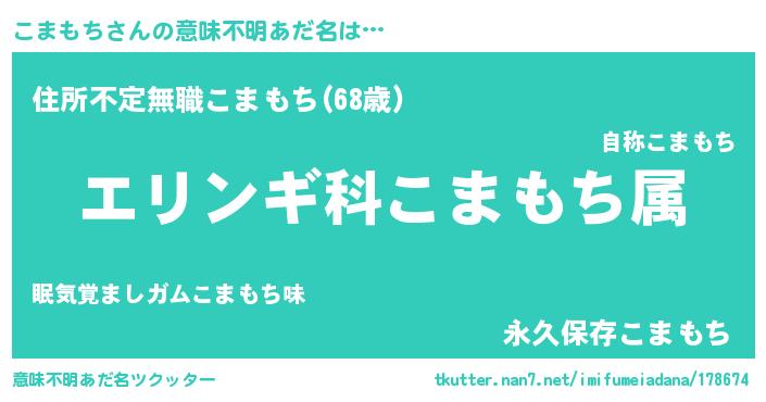 | ヒーロー風カッコイイあだ名 | 『仮面コマダー』『ネオコマモチ』 |