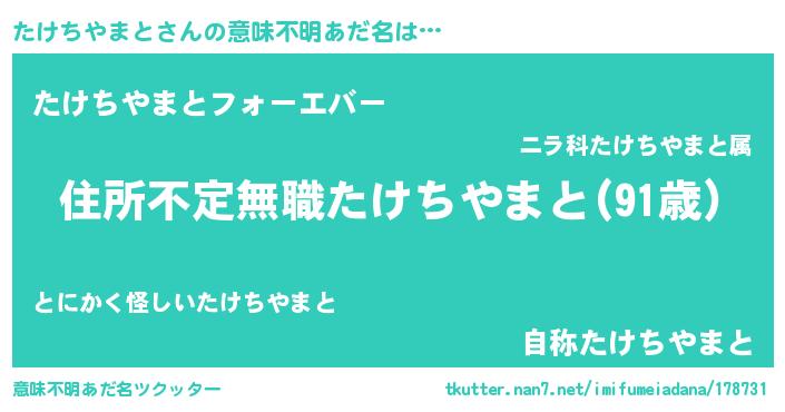 | 男性向けラノベタイトル風あだ名 | 『この素晴らしい世界にたけちやまとを!』 |