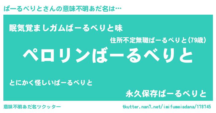 | ヘコむあだ名 | 『ばーにー』『ばーるべりと(小並感)』 |