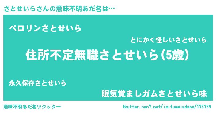 | ヒーロー風カッコイイあだ名 | 『仮面サトダー』『スーパーサトセイラ』 |