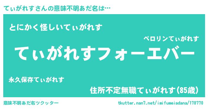 | 欧米人風あだ名 | 『てぃがれすクリステル』 |