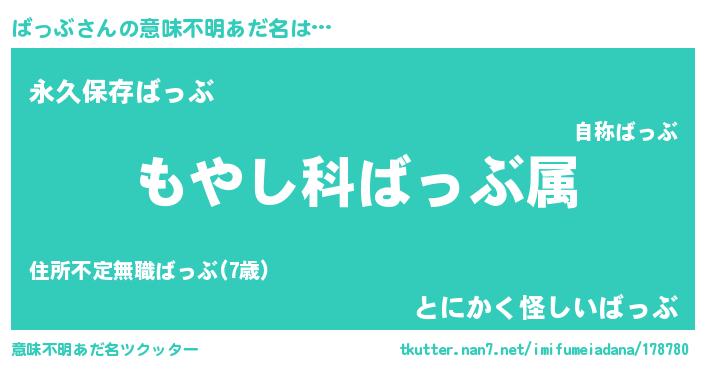 | 男性向けラノベタイトル風あだ名 | 『転生したらばっぶだった件』 |