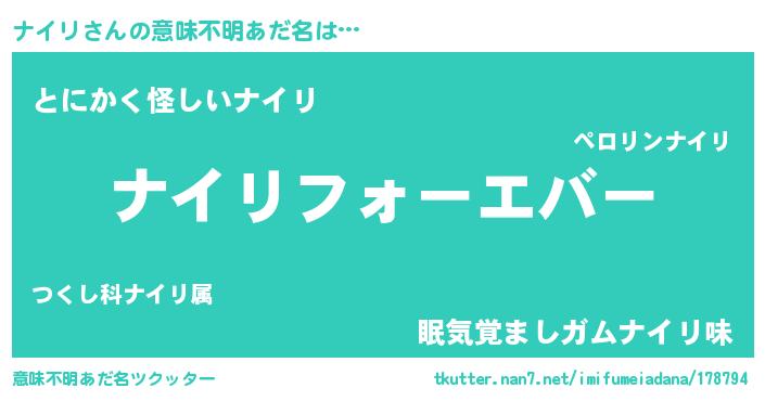 | 自動車の名前っぽいあだ名 | 『ナスラー』『ナルトイパン』『ナンR』 |