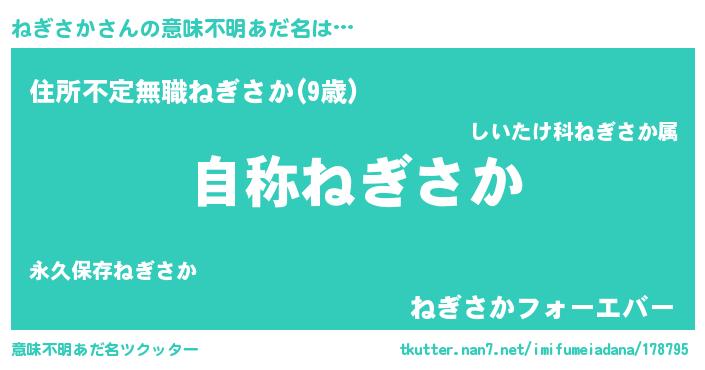| ヒーロー風カッコイイあだ名 | 『サイバー戦士ネギサカ』『仮面ネギダー』 |