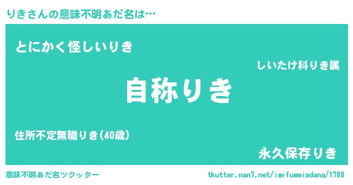 | 男性向けラノベタイトル風あだ名 | 『Re:りきから始める異世界生活』 |