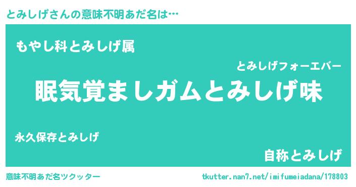 | 女子向けラノベタイトル風あだ名 | 『死神とみしげの再婚』『闇のとみしげ』 |