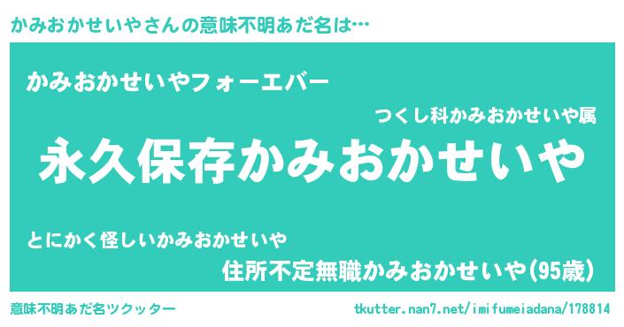 | ヘコむあだ名 | 『かみおかせいや(笑)』『つくし』 |