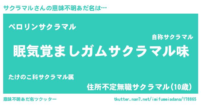 | 女子向けラノベタイトル風あだ名 | 『サクラマル夫妻のなれそめ』 |