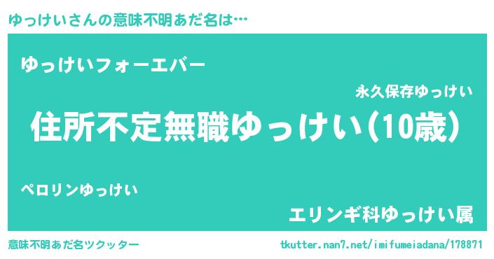 | 男性向けラノベタイトル風あだ名 | 『この素晴らしい世界にゆっけいを!』 |