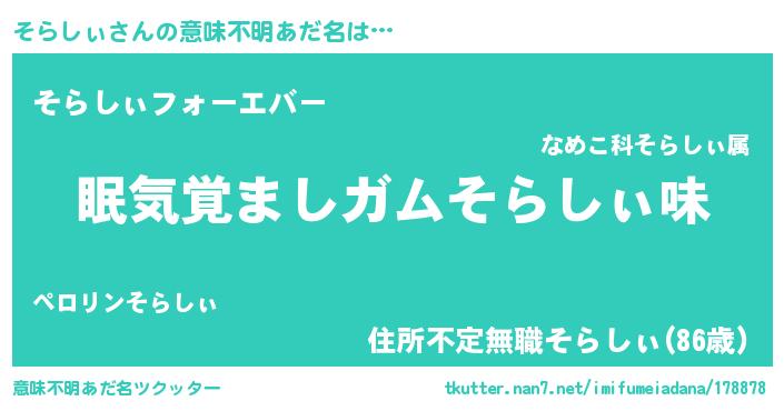 | ヒーロー風カッコイイあだ名 | 『慈愛の使者そらしぃ』『仮面ソラダー』 |