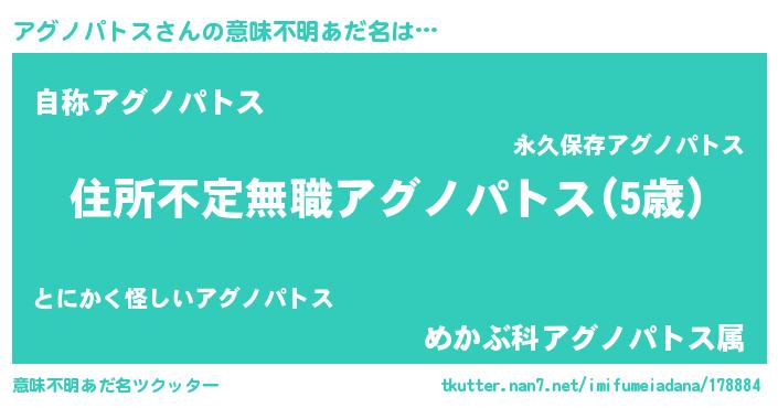 | ヒーロー風カッコイイあだ名 | 『仮面アグダー』『究極戦士アグノパトス』 |