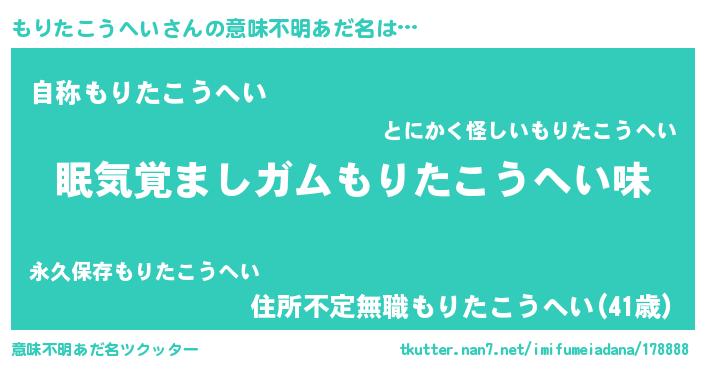 | 男性向けラノベタイトル風あだ名 | 『おまえをオタクにしてやるから、俺をもりたこうへいにしてくれ! 』 |