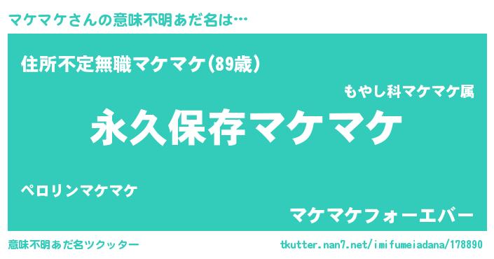 | 胡散臭い通販商品みたいなあだ名 | 『来世でも幸せになれる健康食品…その名も「マケマケ」』 |
