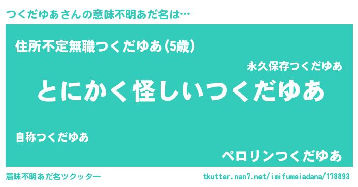 | ポケモン風あだ名 | 『ヒツクダユア』『ツークイ』 |