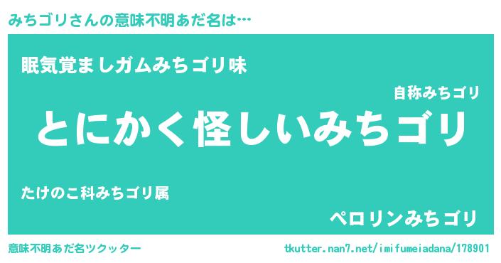 | 男性向けラノベタイトル風あだ名 | 『ダンジョンにみちゴリを求めるのは間違っているだろうか』 |